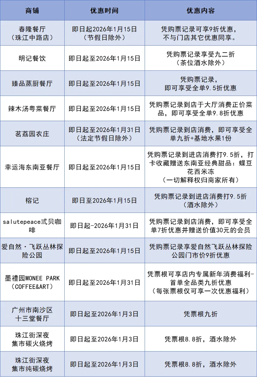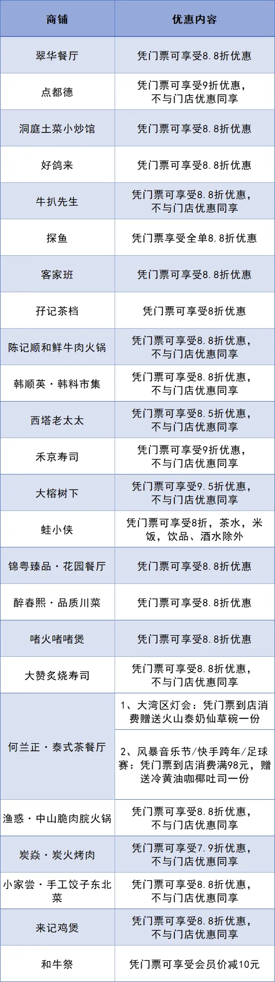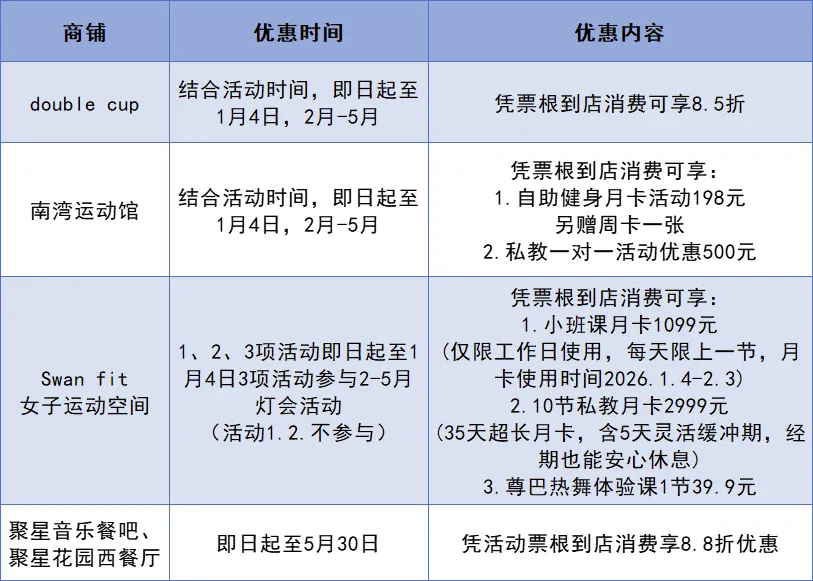 使用规则:请出示有效活动票根或购票记录,详情以各商家现场告知为准。