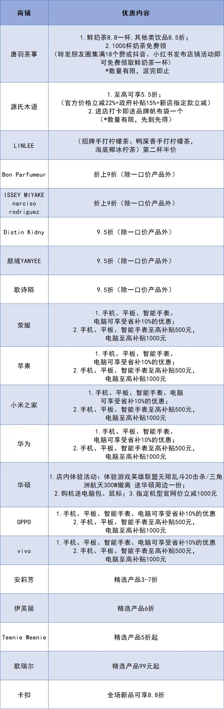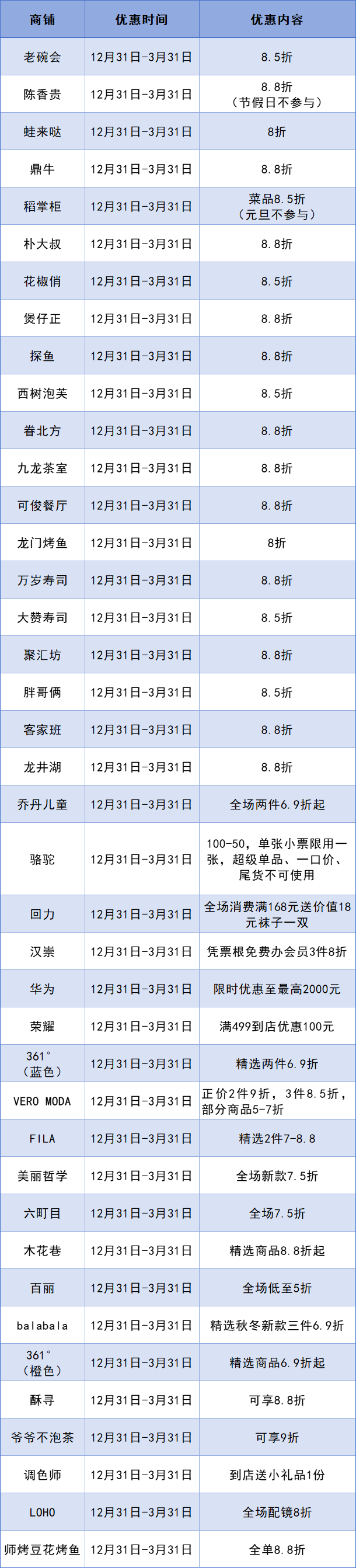 优惠时间:各商家优惠时间不尽相同,请留意具体说明。